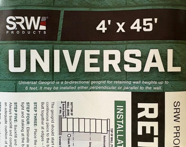 Use for stabilizing retaining walls. Any wall over four feet high should incorporate Geogrid in its design. Our Universal Geogrid is bi-directional and may be installed either perpendicular or parallel to the wall.